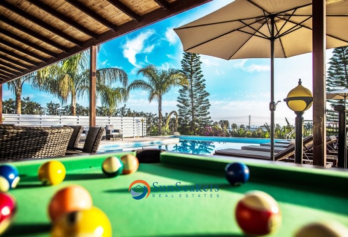 Outside the garden area is dominated by the huge swimming pool and outside dining area.