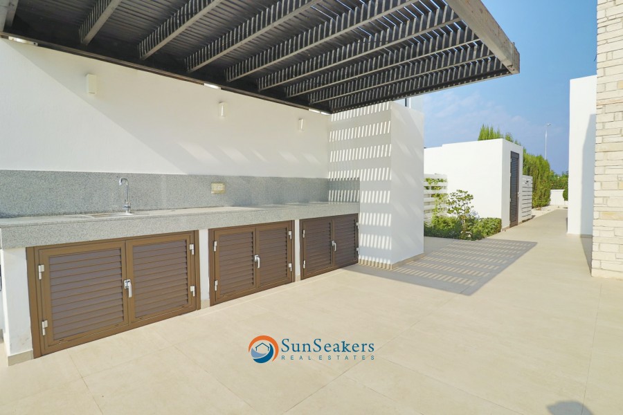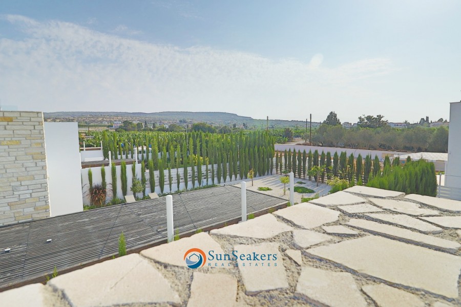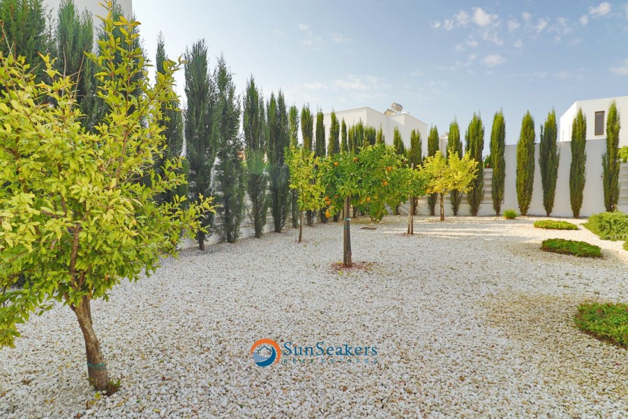 The outdoor area is a true sanctuary. Thoughtfully designed to maximise enjoyment of the Cyprus climate, the grounds feature multiple seating and relaxation areas, a BBQ area, an outdoor shower, mature fruit trees, and a beautiful private swimming pool, all creating an oasis of calm and luxury.