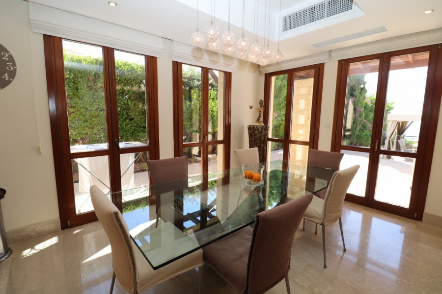 Эта впечатляющая вилла гордо расположена на участке площадью 1778 м2 прямо на первой линии курорта, откуда открывается беспрепятственный вид на море. Вы входите в эту великолепную собственность через очень большую подъездную дорожку, которая вмещает несколько автомобилей, и входите в великолепную гостиную с застекленными во всю длину дверями из цельного дерева, пропускающими достаточно света. Слева вы найдете очень просторную столовую открытой планировки с великолепной роскошной кухней с гранитными столешницами, всей новейшей встроенной фирменной техникой и роскошной фурнитурой с несколькими стеклянными деревянными дверями во всю длину. Справа от гостиной вы найдете впечатляющую главную спальню с полностью оборудованными роскошными шкафами во всю длину стеклянных дверей, ведущих на террасу с потрясающим видом и потрясающей ванной комнатой с мраморным полом и стенами.