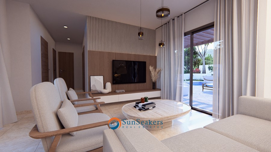 The villa boasts a fully separate, well-equipped kitchen – ideal for those who enjoy cooking or entertaining, with ample space for meal preparation and dining. Whether you’re enjoying a quiet breakfast or hosting a family dinner, the layout is designed to feel both functional and inviting.