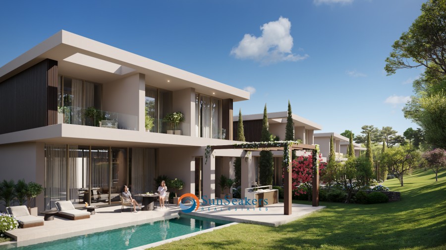 A large open-concept living and dining area flows seamlessly into a fully equipped kitchen, perfect for entertaining or family gatherings. Enjoy the Mediterranean climate with a private swimming pool, landscaped garden, sun terrace.