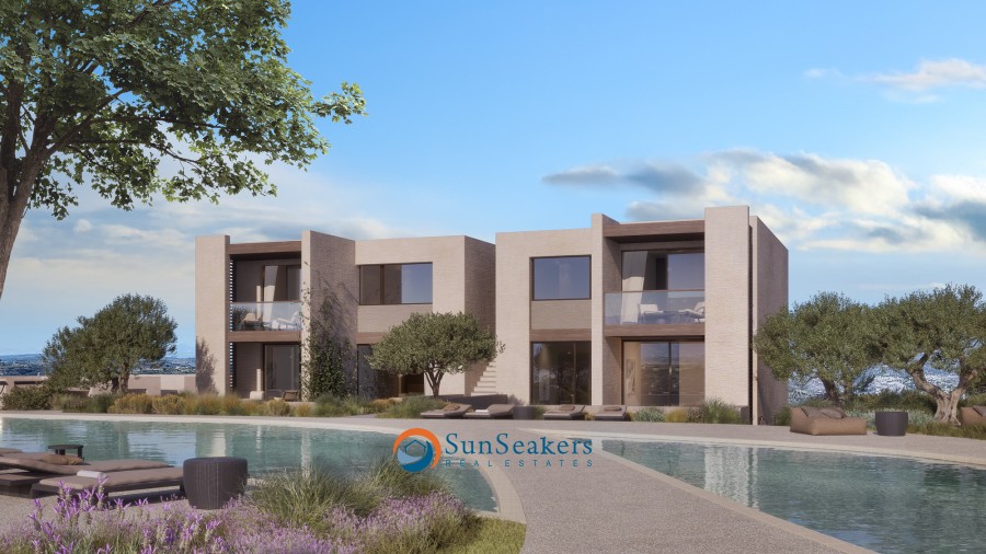 The design blends modern architecture with traditional Cypriot style, incorporating local stone, terracotta roof tiles, and glass. These classic materials are combined with an ultra-modern edge, resulting in timeless, enduring designs that fully exploit the spectacular hilltop setting.