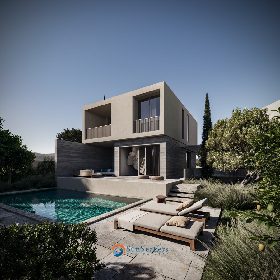 There are three distinct villa styles to choose from, each designed to be airy and open, with expansive floor-to-ceiling windows that blur the boundaries between indoor and outdoor living. Although contemporary in appearance, the architectural design pays tribute to traditional Cypriot character, incorporating natural stone, timber, and marble to create a timeless aesthetic that blends seamlessly with the surrounding landscape.
