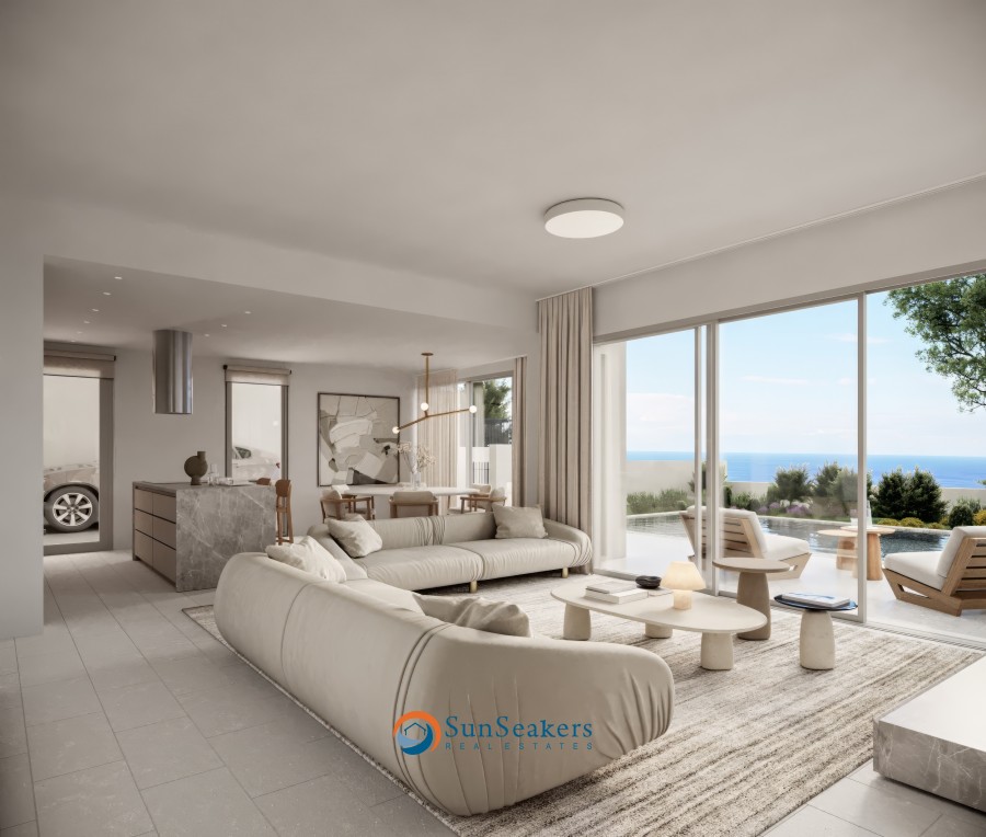 Perched gracefully on a hilltop, commands panoramic views of the Mediterranean countryside and sea, offering a perfect blend of beauty, tranquility, and exclusivity. Nineteen villas have been thoughtfully positioned to maximise these spectacular views, each featuring its own private garden with ample space for a swimming pool, creating an idyllic setting for outdoor living.