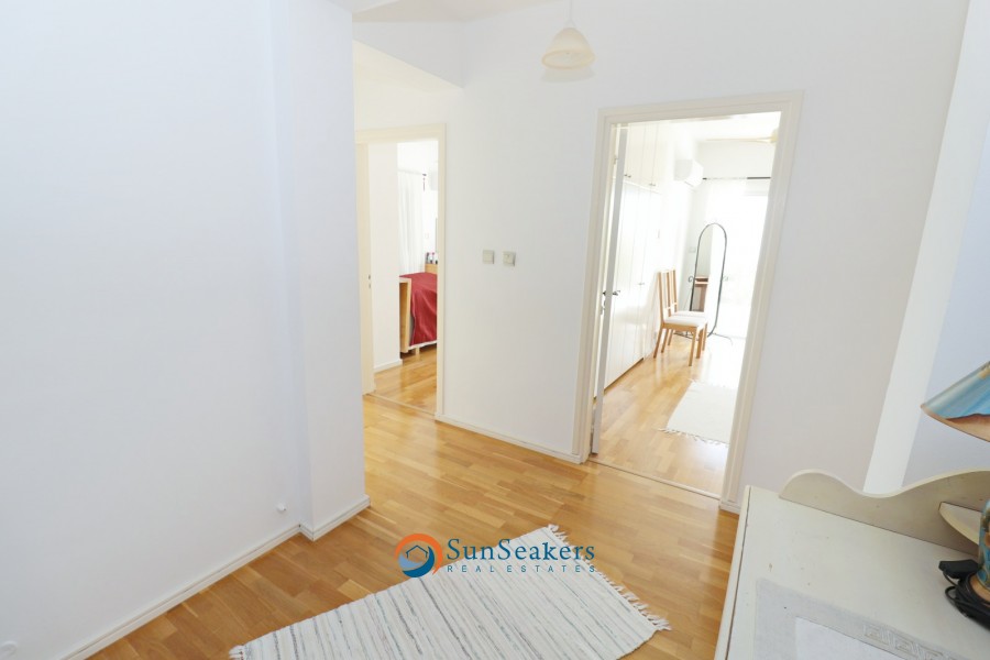 Arriving at the property, you are welcomed by a private garage and a few steps leading to the entrance. Inside, a bright and inviting hallway with large windows immediately captures the stunning views and fills the home with natural light.