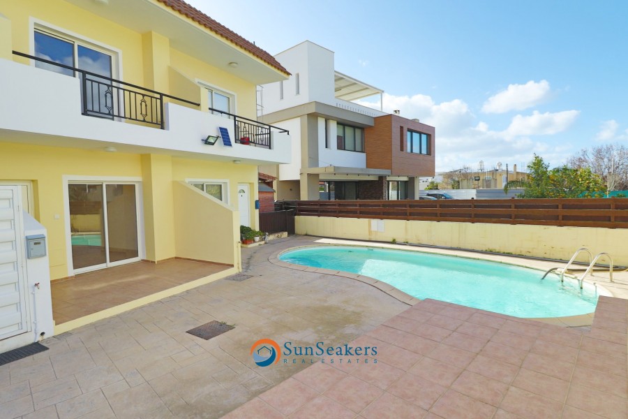 This well-appointed two-bedroom townhouse is located in a quiet and well-maintained development with a communal swimming pool in the desirable village of Anavargos. The property enjoys a convenient location close to Pafos town, the highway, the General Hospital, shops, schools including the International School of Paphos, and is approximately a 10-minute drive from the sandy beaches.