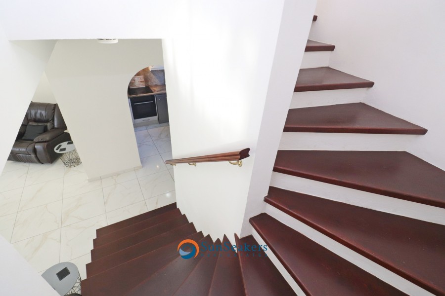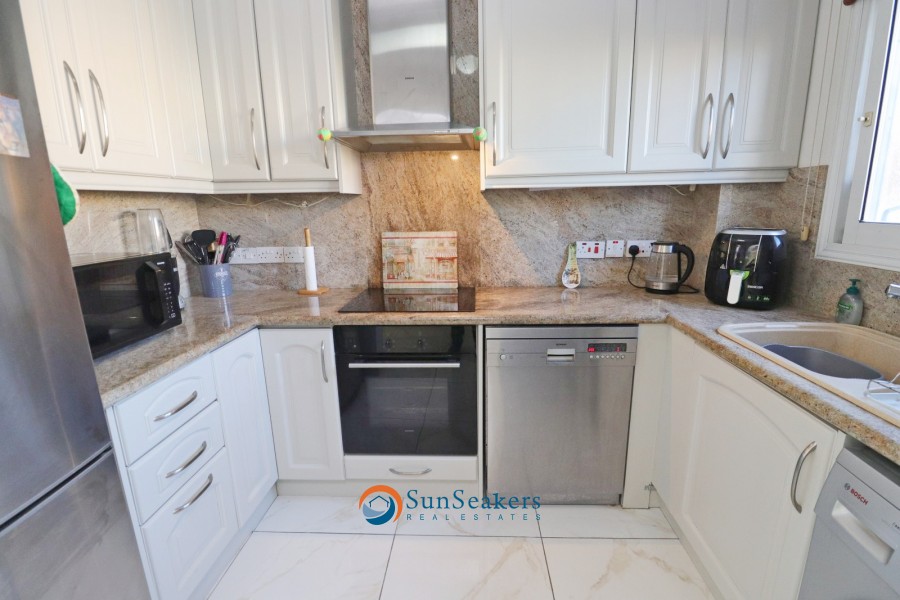 Nestled within an exclusive, gated community, this immaculate home enjoys the benefits of meticulously maintained communal spaces, including a stunningly large swimming pool, a separate children’s pool, and beautifully landscaped gardens that evoke a sense of tranquility and serenity. The entire setting is designed to offer a Mediterranean lifestyle at its finest, with a harmonious balance between elegance and comfort.